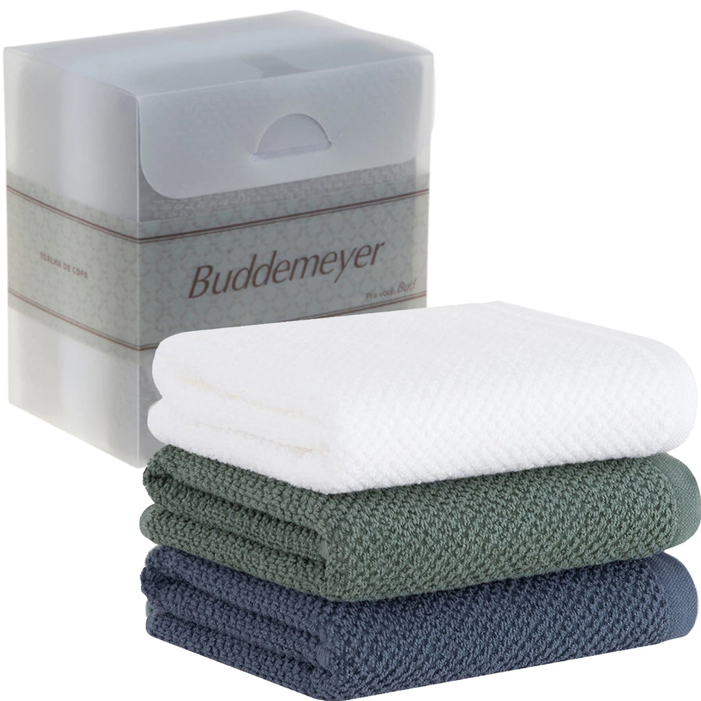 Jogo 3 peças Quadriculado Gourmet. Para um ambiente moderno mas clean, uma peça versátil com estilo e elegância que é essencial e indispensável no dia a dia. Toalhas em felpa, super macias em 100% algodão de fibra longa. Toalhas pré-lavadas e pré-encolhidas. Acabamento especial Buddemeyer que proporciona alta capacidade de absorção, garantindo maciez, toque delicado, volume acentuado, além de brilho natural que realça as cores. A Buddemeyer é referência em qualidade e estilo.